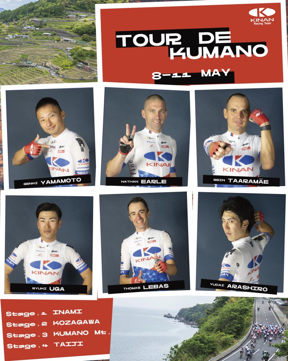 5月8~11日に開催されるステージレース、「ツール・ド・熊野」(UCIアジアツアー2.2)に出場します。ついては、出場予定選手とレース情報をお知らせします。