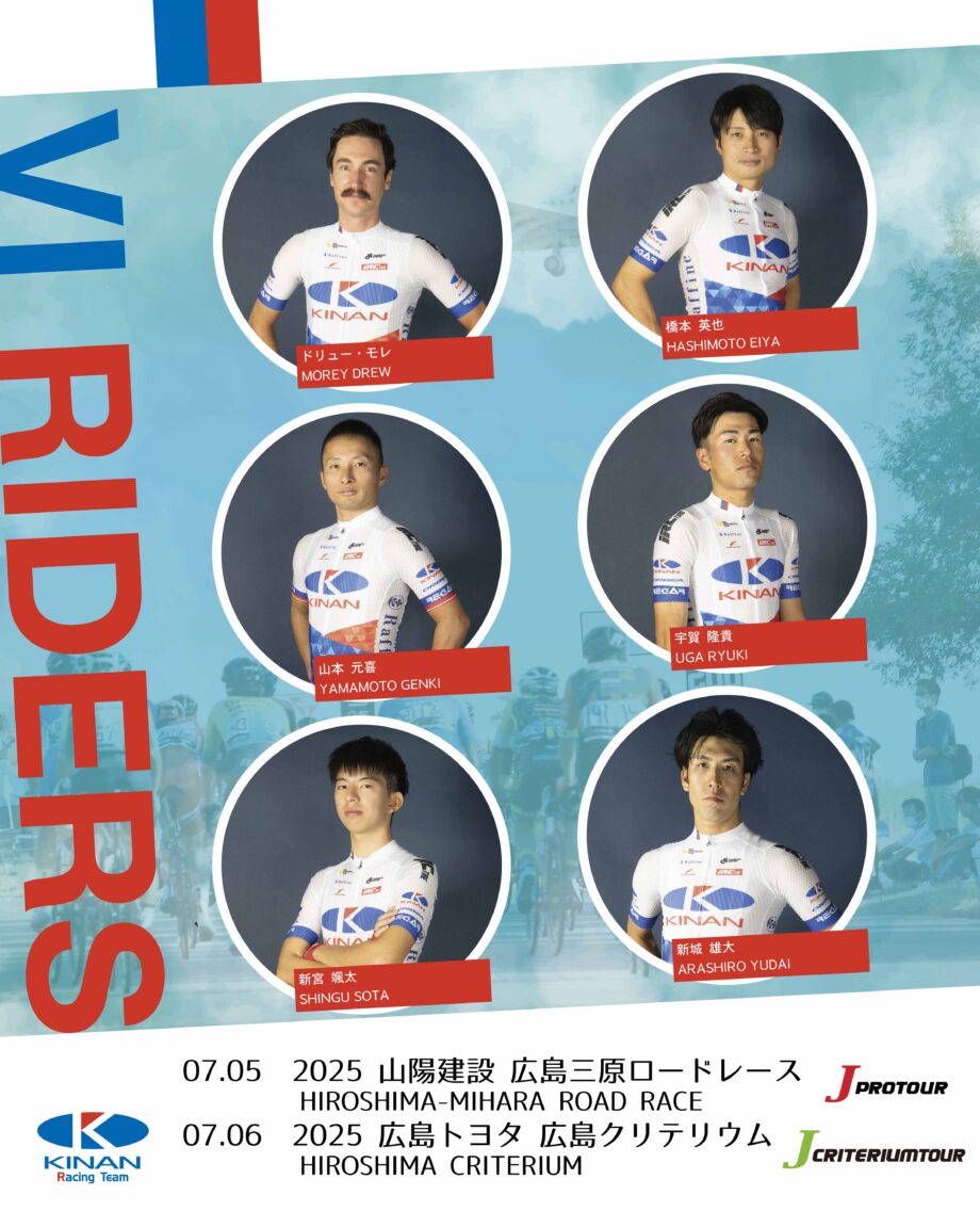 7月5日に開催される「2025 山陽建設 広島三原ロードレース」(Jプロツアー)ならびに同6日に開催される「2025 広島トヨタ 広島クリテリウム」(Jクリテリウムツアー)の出場予定選手とレース情報をお知らせします。