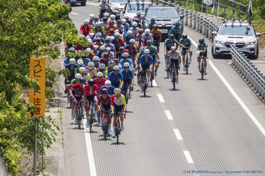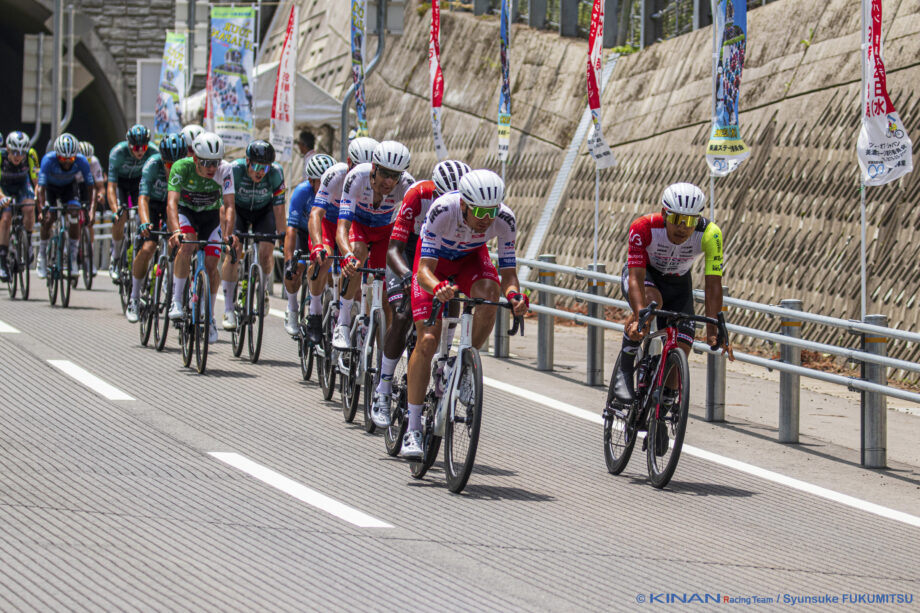 やがて2選手が追いついて、5人がレースをリード。KINAN勢はこれらを見送って、メイン集団に待機。