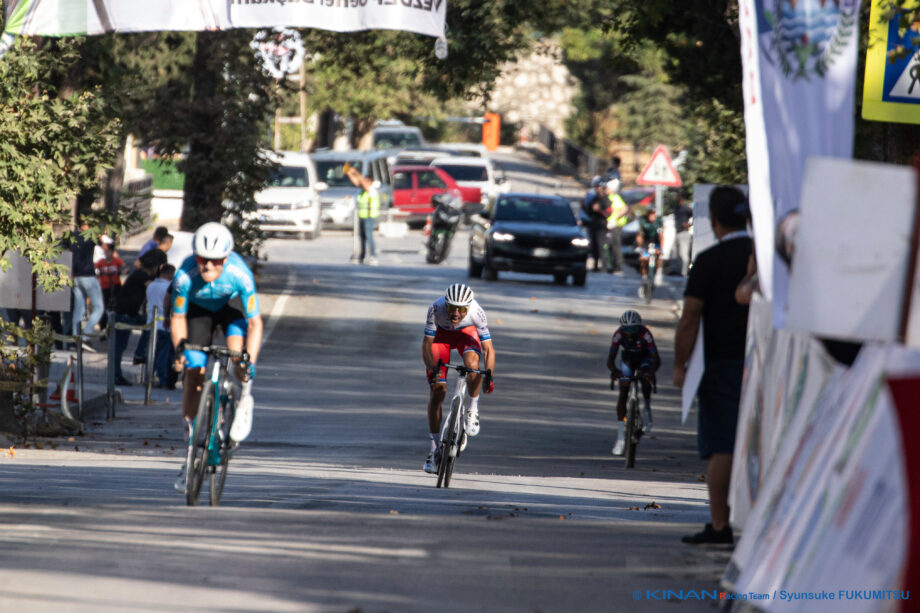 ここで主導権を獲ったのがKINAN勢。上りを利用して一気にペースアップし、集団を崩しにかかる。