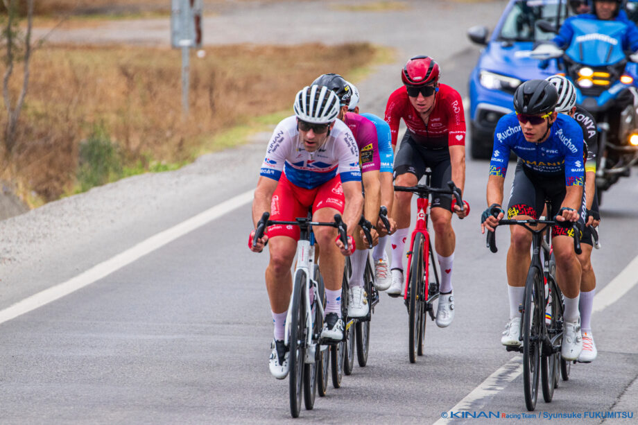 ロードレースステージの初日となる大事な1日、KINAN Racing Teamはレインの個人総合成績を最優先しつつ、逃げや要所でのアタックからチャンスを作り出していく。