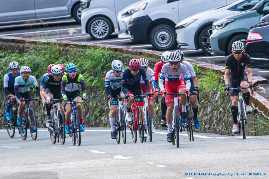 毎年ゲストとして参加するKINAN Racing Teamは今回、橋本英也、宮崎泰史、トマ・ルバ、新城雄大の4選手が急峻な山道に挑んだ。