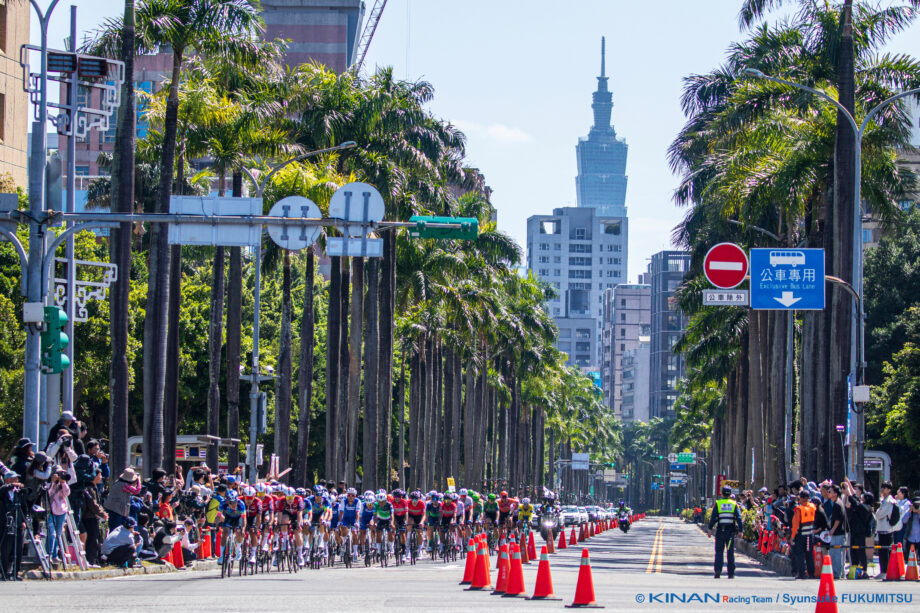 チームごとの思惑が絡んで先行する選手こそ出ないものの、戦前の予想通りハイスピードでレースは進行。多くの観客が集まった日曜の台北市内を時速50km前後で選手たちは走り抜ける。