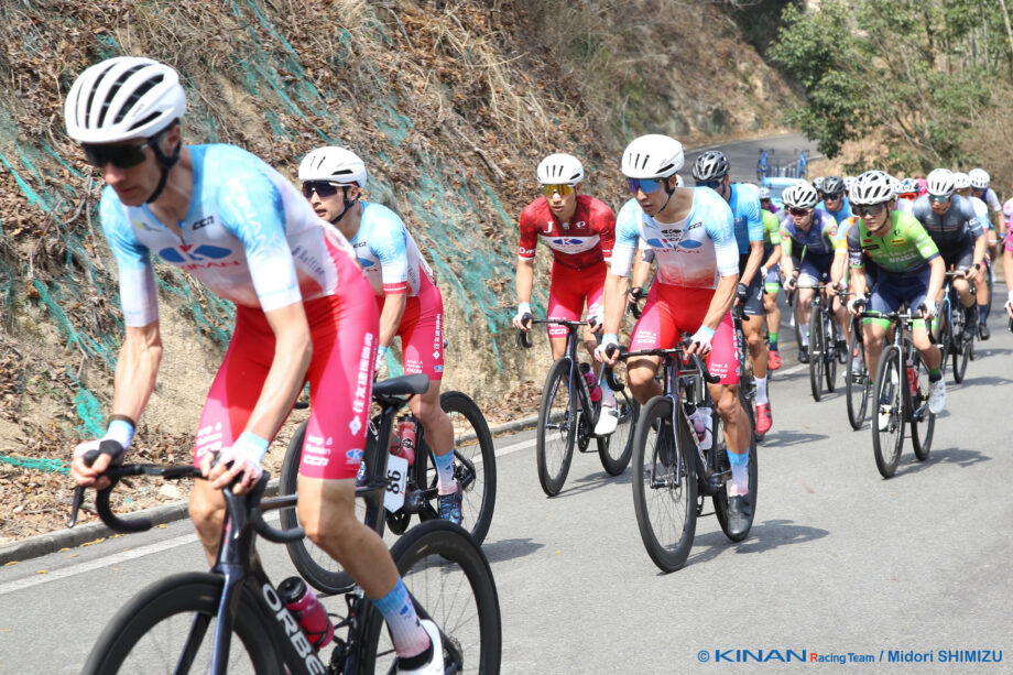 KINAN Racing Teamの選手は前方に位置し、様子を窺いながらレースを進める。