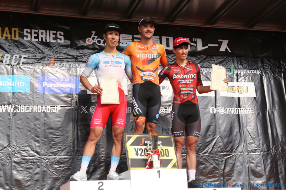 KINAN Racing Teamからは6名が出場し、新城雄大がフィニッシュ前での2位争いのスプリントを制し、表彰台の一角を押さえた。