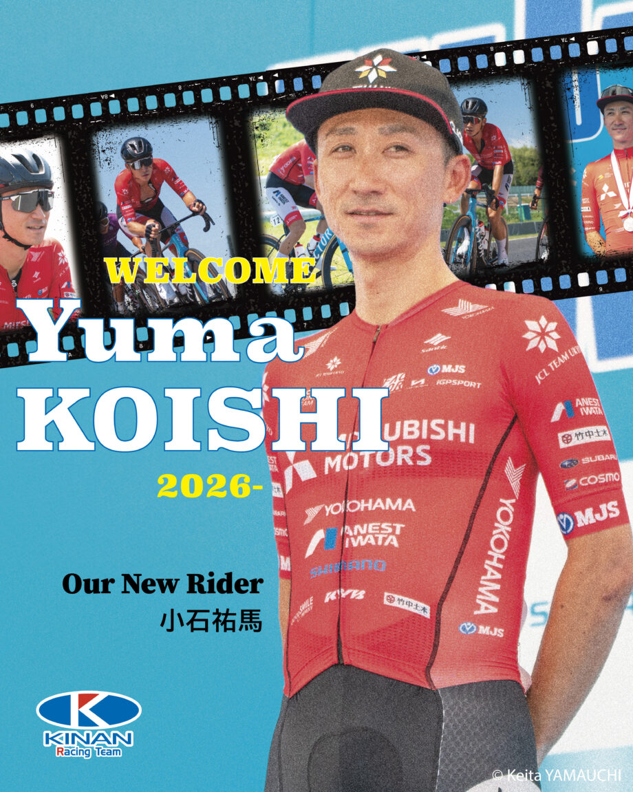 KINAN Racing Teamは2026年シーズンより、小石祐馬選手を迎えますことをお知らせします。